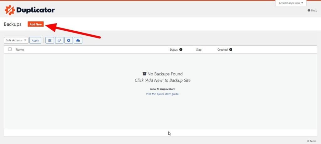 Dazu gehst Du im Menü auf "Duplicator Pro > BackUps":